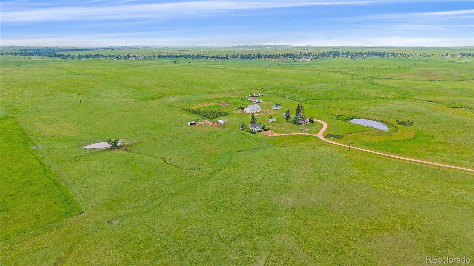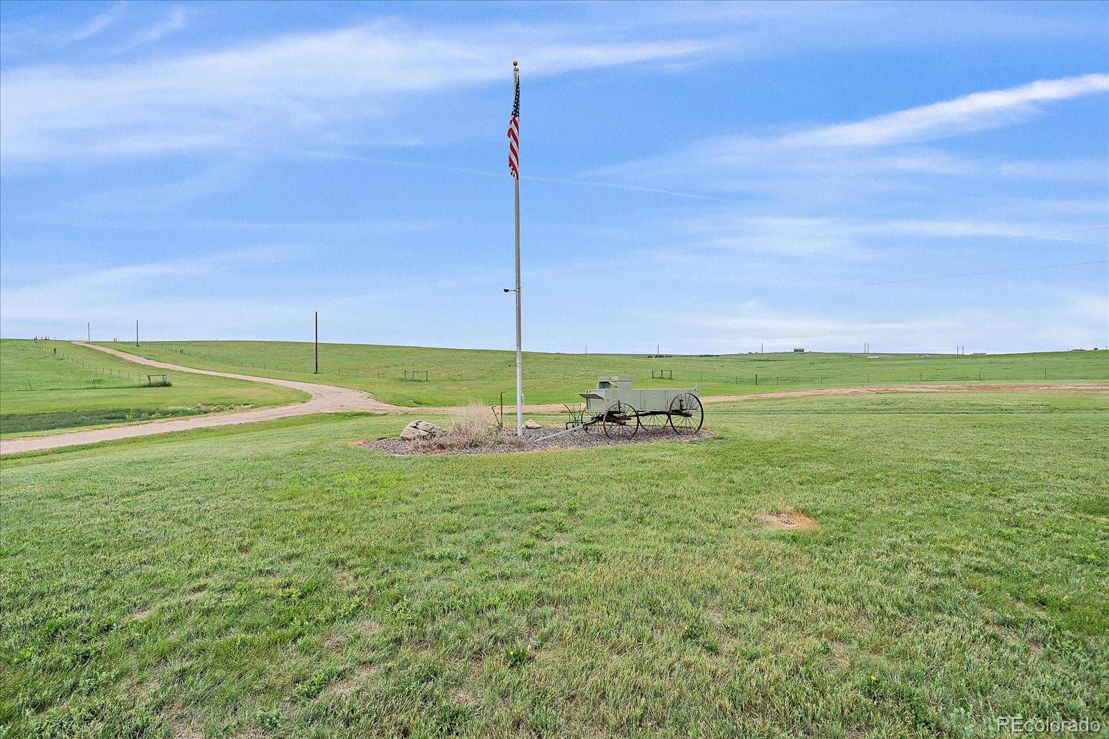 "To forget how to dig the earth and tend the soil is to forget ourselves" Unknown. Discover one of Colorado's most tranquil and historic scenic getaways with this 317-acre farm in Elbert, CO, offering expansive Pikes Peak views, rich history, and modern amenities. This unique property is a working slice of Colorado heritage, with the historic Cherokee Trail running through it, and has had only two owners in its lifetime. The land features approximately 100 acres of hay production, a serene pond, multiple barns, several loafing sheds, horse stalls, and tree farm. A windmill-fed water system supports agricultural use, and two buried 1,000-gallon propane tanks supply energy alongside a whole-home generator for peace of mind and potential for adding solar for off-grid living.