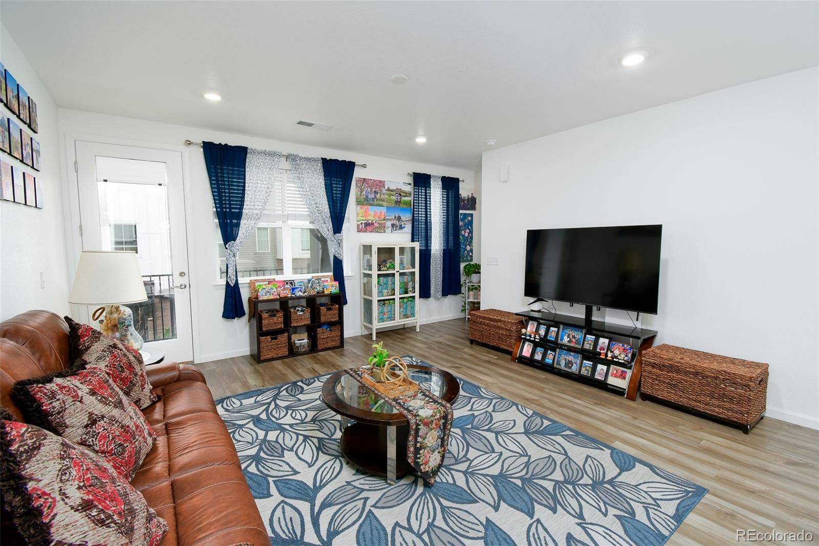 Built in 2023 - this stunning town home lives better than new! Open concept main level featuring luxury vinyl plank flooring, a bright and spacious family room that opens to a covered patio, a beautifully designed kitchen with a gas range, stainless-steel appliances, large island with pendant lighting, and a dedicated coffee bar or organizational area. The adjacent dining area with multiple windows boasts lots of natural light. A main floor powder room and closet round out the main level. Head upstairs for a great layout with two secondary bedrooms on one side, a large full bathroom, laundry area in the middle for convenience, and a private primary suite on the other side. The primary retreat includes a spa-inspired ensuite bathroom with quartz countertops, dual sinks, a private water closet, and a walk-in shower. Bedroom also includes a walk-in closet. The entry level from the attached two-car garage features an additional large bedroom, or office area with a generous closet and an ensuite bathroom with a low entry walk-in shower. This one is unique with a full-length driveway offering additional parking. This low-maintenance home includes a private fenced front patio and HOA-maintained landscaping all around, so you can spend more time enjoying the Castle Pines lifestyle. Ideally situated with easy I-25 access, yet tucked into a peaceful neighborhood close to top-rated schools, parks, dining, and shopping. Don't miss this rare opportunity for a newer home that already has the window coverings, all kitchen appliances and newer washer and dryer included. This is your chance for comfort and convenience in Castle Pines.