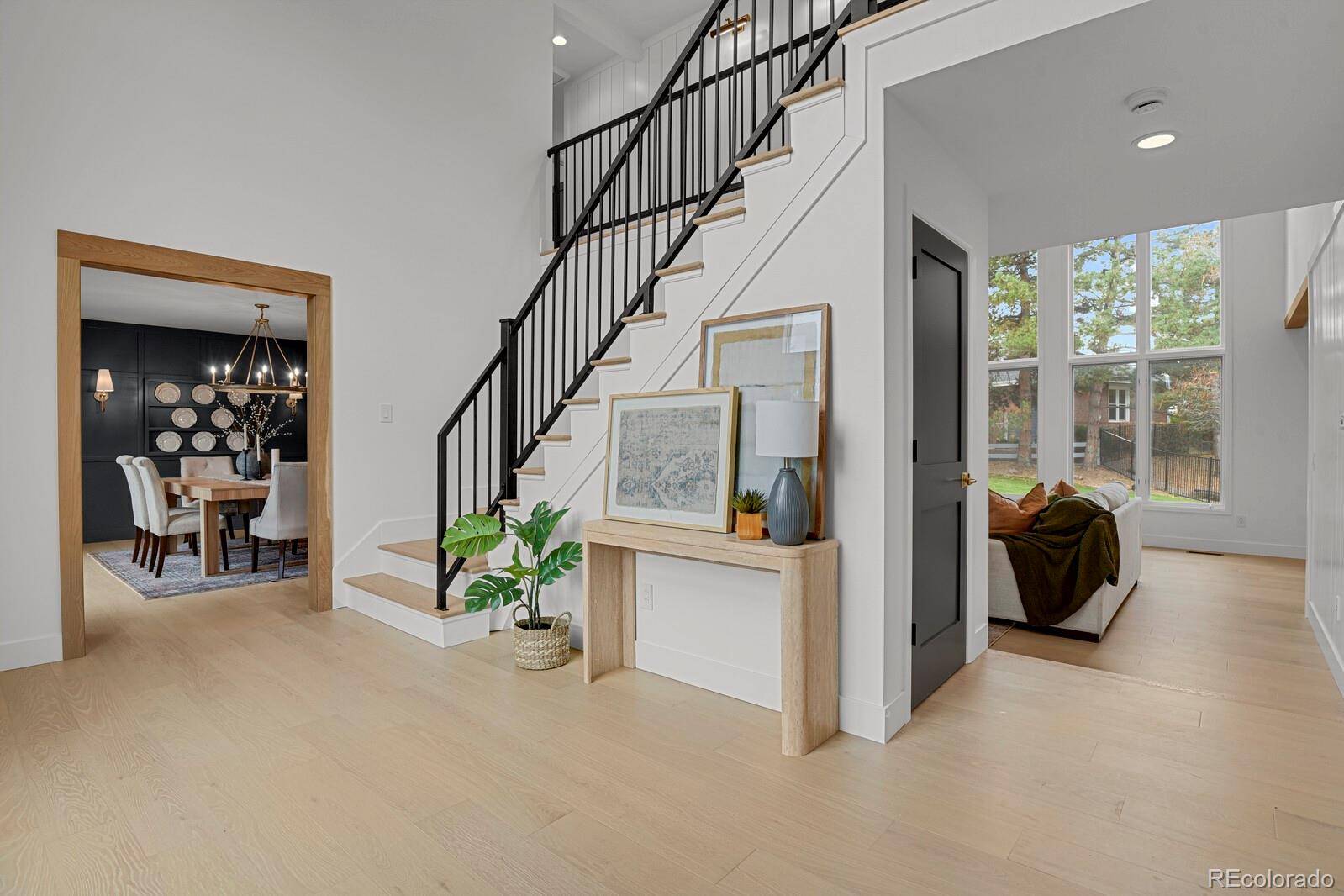 Step into one of the most coveted gated neighborhoods in Highlands Ranch and the South Metro area, Falcon Hills—where some of Colorado's biggest sports stars and even Hollywood names have called home. This exceptional residence represents the complete transformation of a classic into a true custom masterpiece by Kempf Properties. Every inch of the home has been reimagined in a full renovation that blends timeless craftsmanship with modern elegance. Brick, board and batten, vertical shiplap, and shiplap ceilings add architectural depth to the bright white palette, while white oak floors, beams, shelves, and detailed woodwork bring warmth and sophistication throughout. The kitchen is the heart of the home and designed to impress with a Wolf range, stainless steel appliances, quartzite countertops, and a handcrafted plaster hood. The main living area centers around a dramatic eighteen-foot fireplace framed in custom brickwork, creating a stunning focal point for gatherings. A marble-topped bar reminiscent of a boutique hotel lounge provides an inviting space for entertaining. The primary suite offers a luxurious retreat with a spa-inspired ensuite featuring dual shower heads and a custom-designed closet that blends elegance and practicality. A spacious office with marble accents and designer lighting completes the thoughtful layout. Every fixture, finish, and detail reflects a commitment to quality and intentional design. From the new custom steel front door to the curated interior finishes, this home captures the essence of refined living.