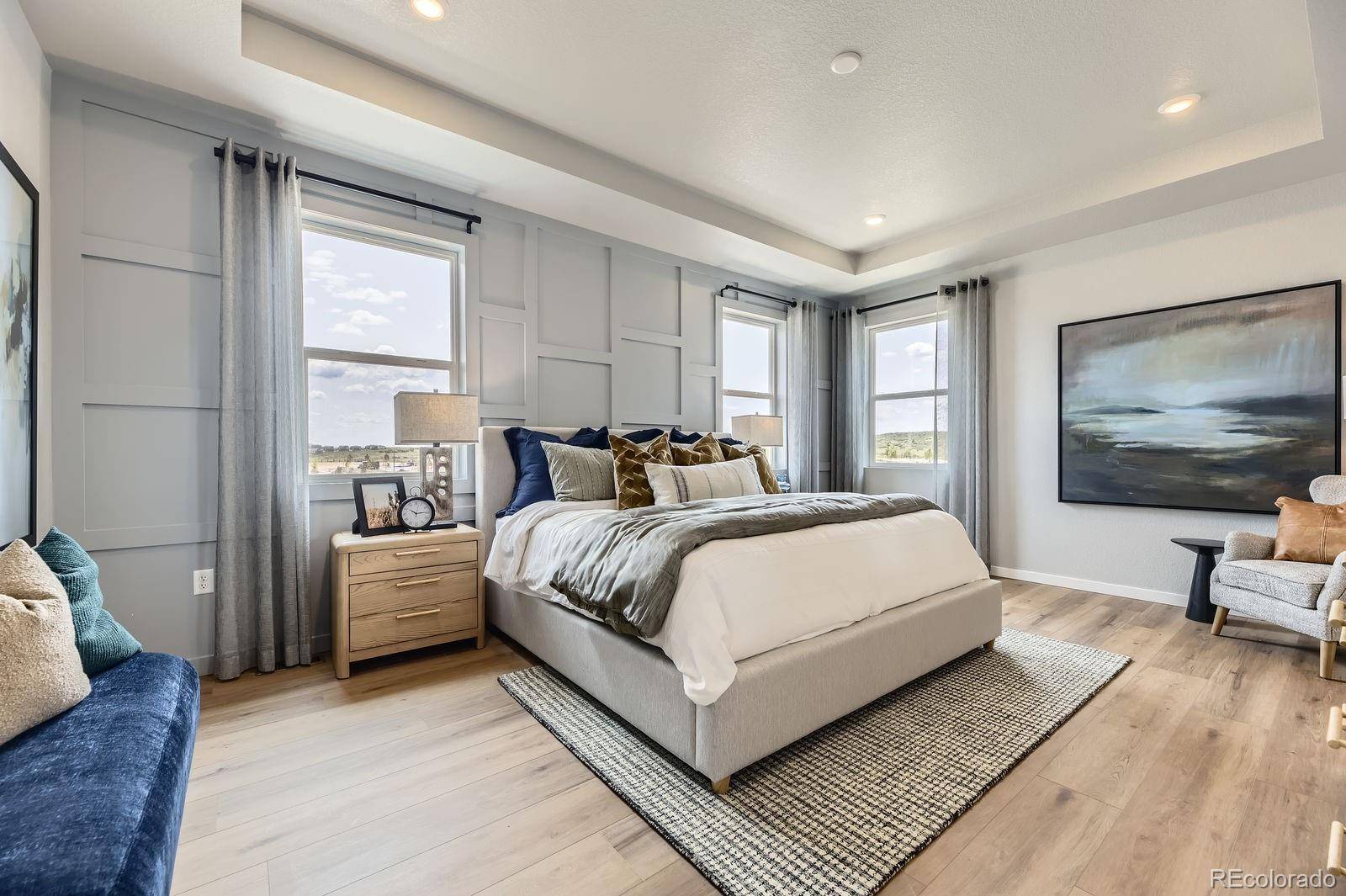 MOVE-IN READY home with MAIN LEVEL OWNER'S SUITE on garden level homesite backing to open space! Welcome to the Frontier - a thoughtfully designed two-story home that perfectly balances style, comfort, and functionality. Step inside to a bright, open-concept great room that is perfect for gatherings with family and friends. The main level owner's suite provides a private retreat with 5 pc. bath while two additional bedrooms, a dedicated study, and a spacious loft upstairs offer flexibility for work, guests, or play. The chef-inspired kitchen is the true heart of the home, featuring a large center island, stunning 42" charcoal gray cabinetry with soft close doors/drawers and plenty of storage, quartz countertops, and Whirlpool stainless steel appliances including a contemporary gas range with hood and built-in microwave. This home is designed for modern living with 9' ceilings throughout the main level and energy-efficient features such as a tankless water heater. Outside, embrace the vibrant community life and all that Parker has to offer. Looking Glass offers an array of amenities for residents to enjoy. Don't miss out on the opportunity to make this amazing home yours! Schedule a showing today. * Please note that the interior photos provided are the 'Frontier' model home and not the actual home.